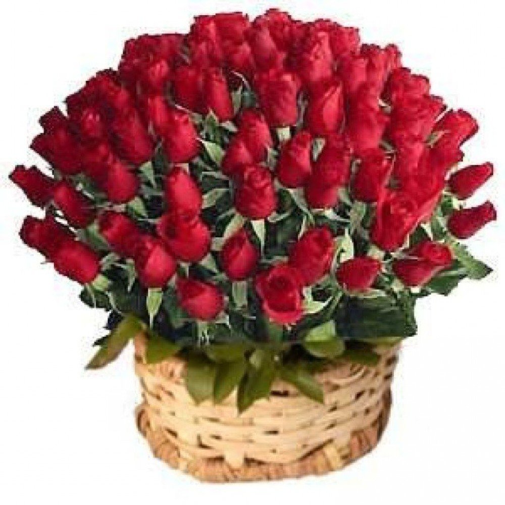 72 Red roses in a round basket, beautifully arranged:The red rose has a beautiful appearance that will drive people crazy. This basket depicts beauty and love. Send this basket of love and beauty to your beloved who lives far away from you.