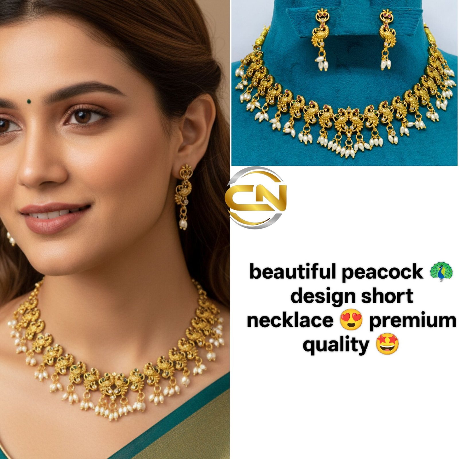 peacock design short necklace