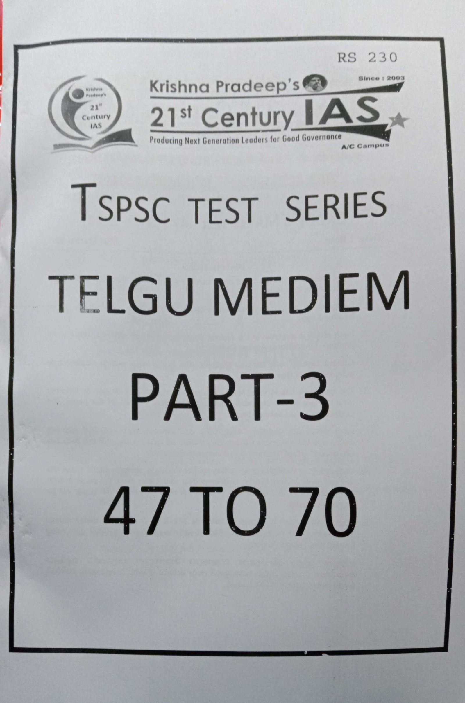 TSPSC GROUP 1 MAINS TEST SERIES TEST (47-70) PART-3 [TELUGU MEDIUM] 21 CENTURY XEROX PRINTED MATERIAL