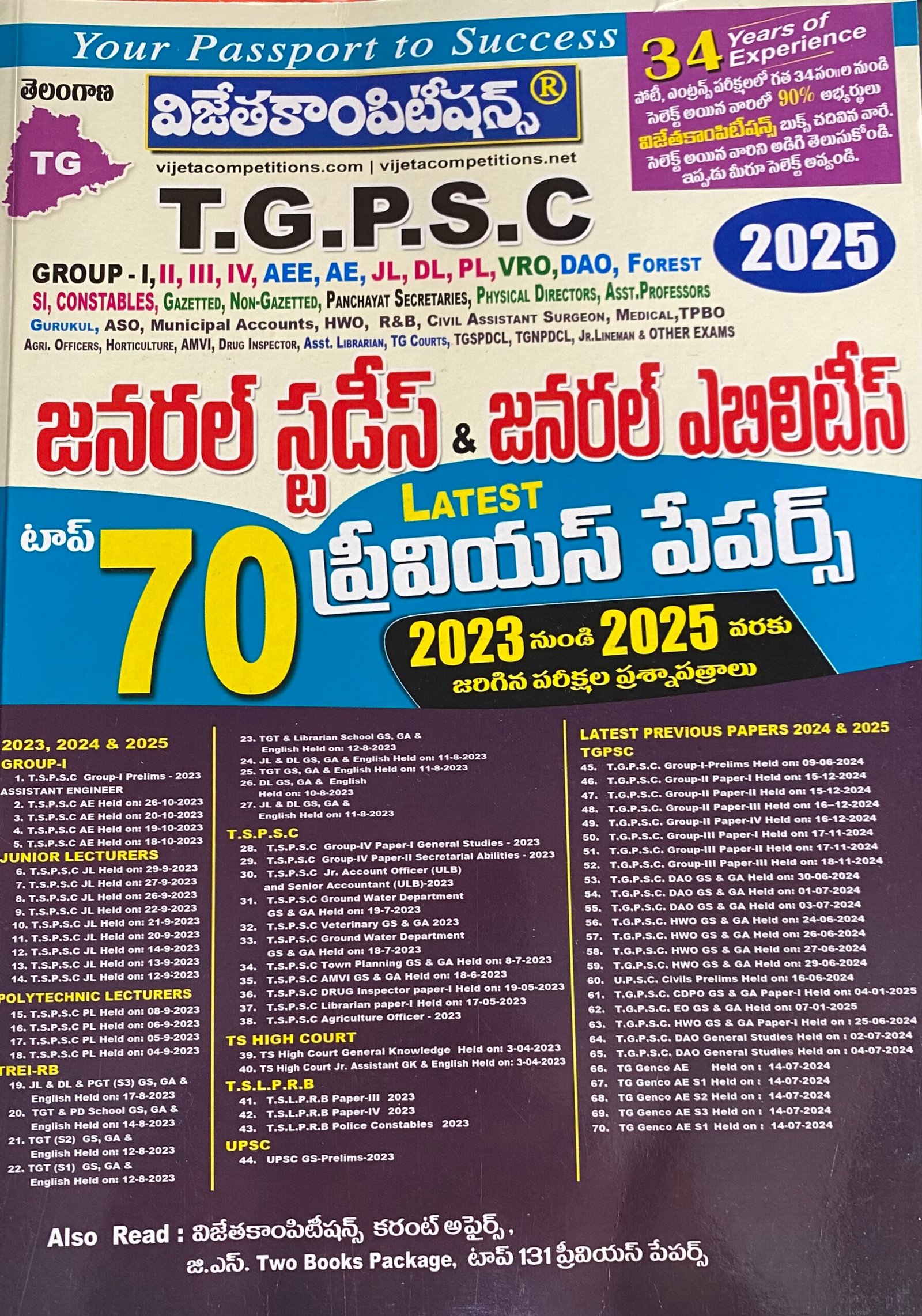 Vijetha TGPSC 2025 General Studies & General Abilities Top 70 Latest Previous Papers 2023-2025[Telugu Medium]2025Ed